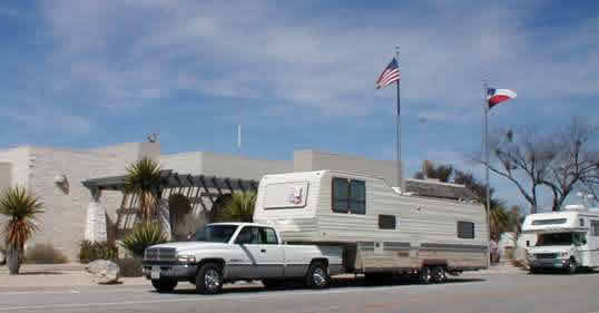 Our rig parked in front ot the Judge Roy Bean Visitor Center