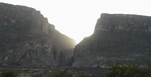 Sunset shinning through a canyon at Big Bend NP