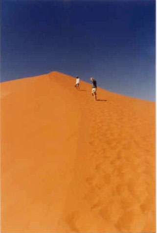 James and Greg (brother-in-law) climbing Dune 45 at Sossusvlei |